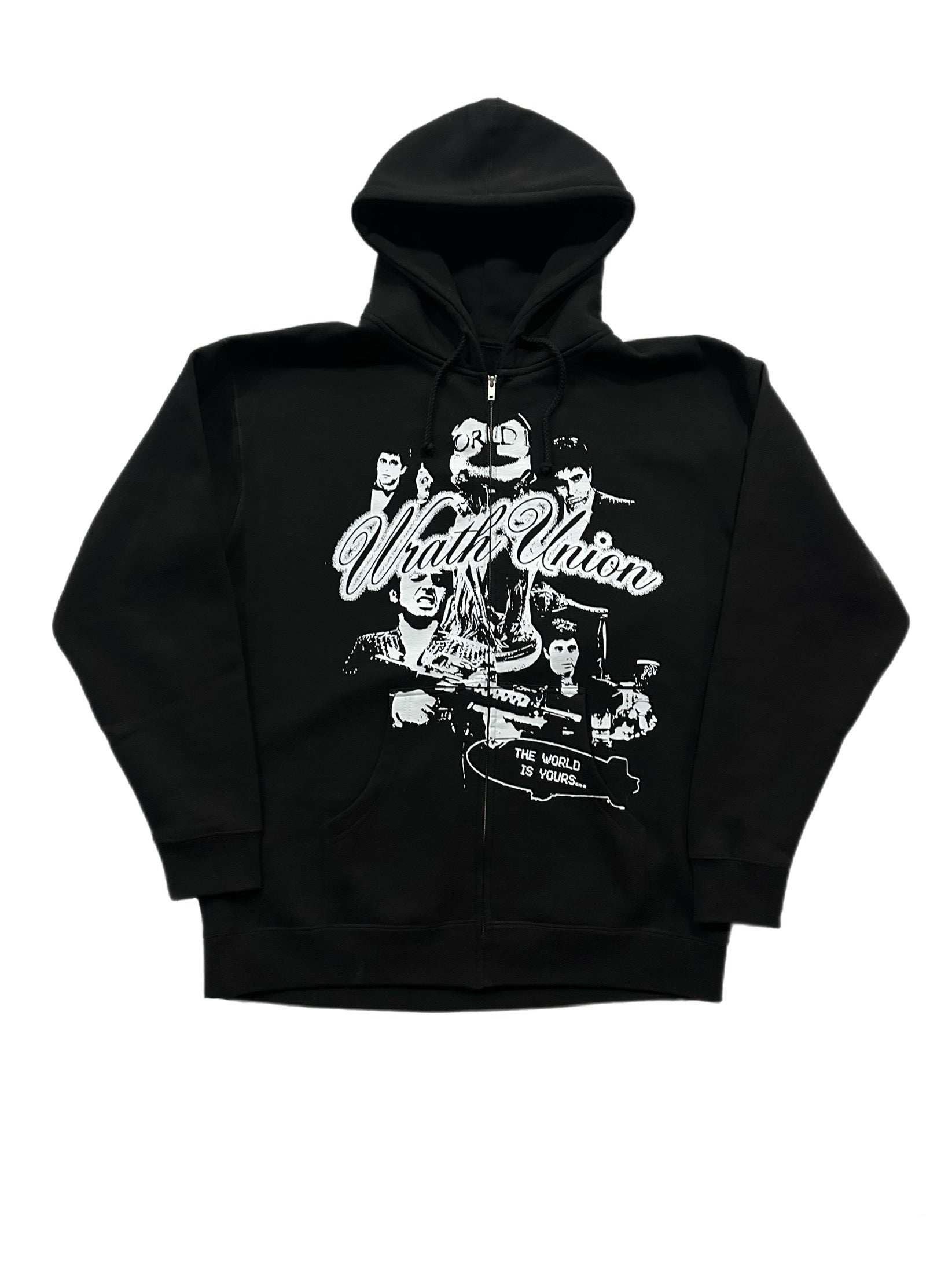 10 oz. 70% cotton blend hooded sweatshirt with printed graphic on front.